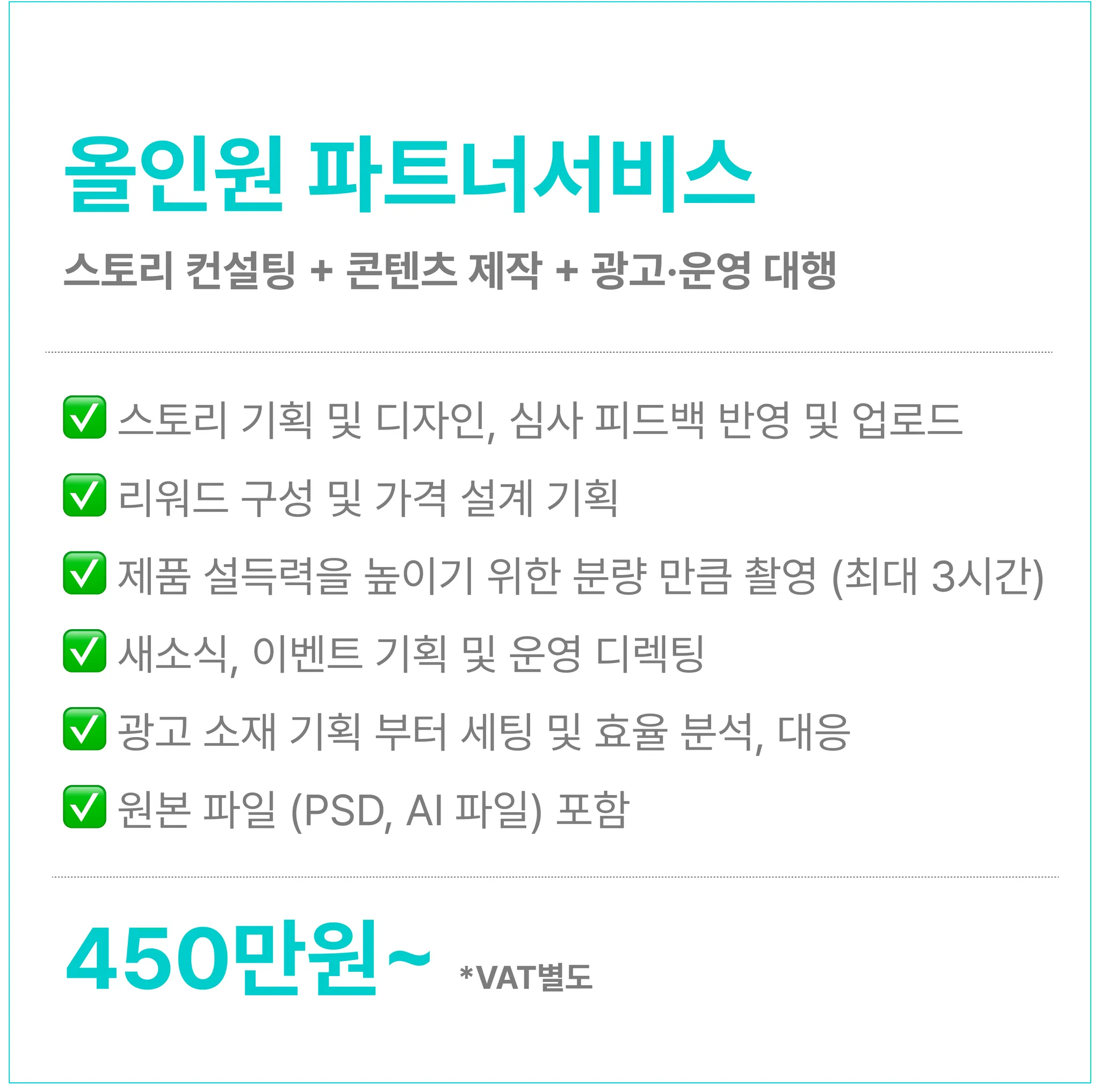 스토리 제작부터 광고, 운영 디렉팅까지 함께하는 서비스입니다.