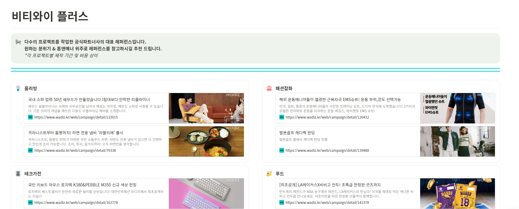 외부 레퍼런스의 퀄리티가 좋더라도 ‘와디즈 레퍼런스’ 위주의 입력이 매칭에 유리합니다.