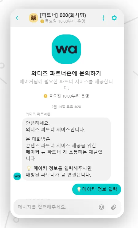 영업 시간 외의 대화는 파트너에서 확인이 지연될 수 있습니다.